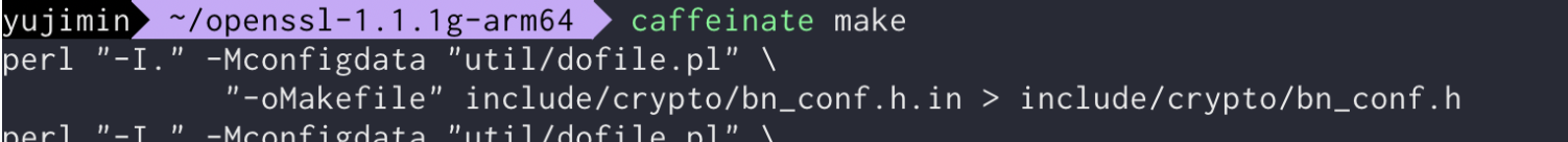 위에서 openssl 설치할 때 만든 ~/openssl-1.1.1g-arm64 폴더로 이동해서 아래 명령어 순서대로 입력