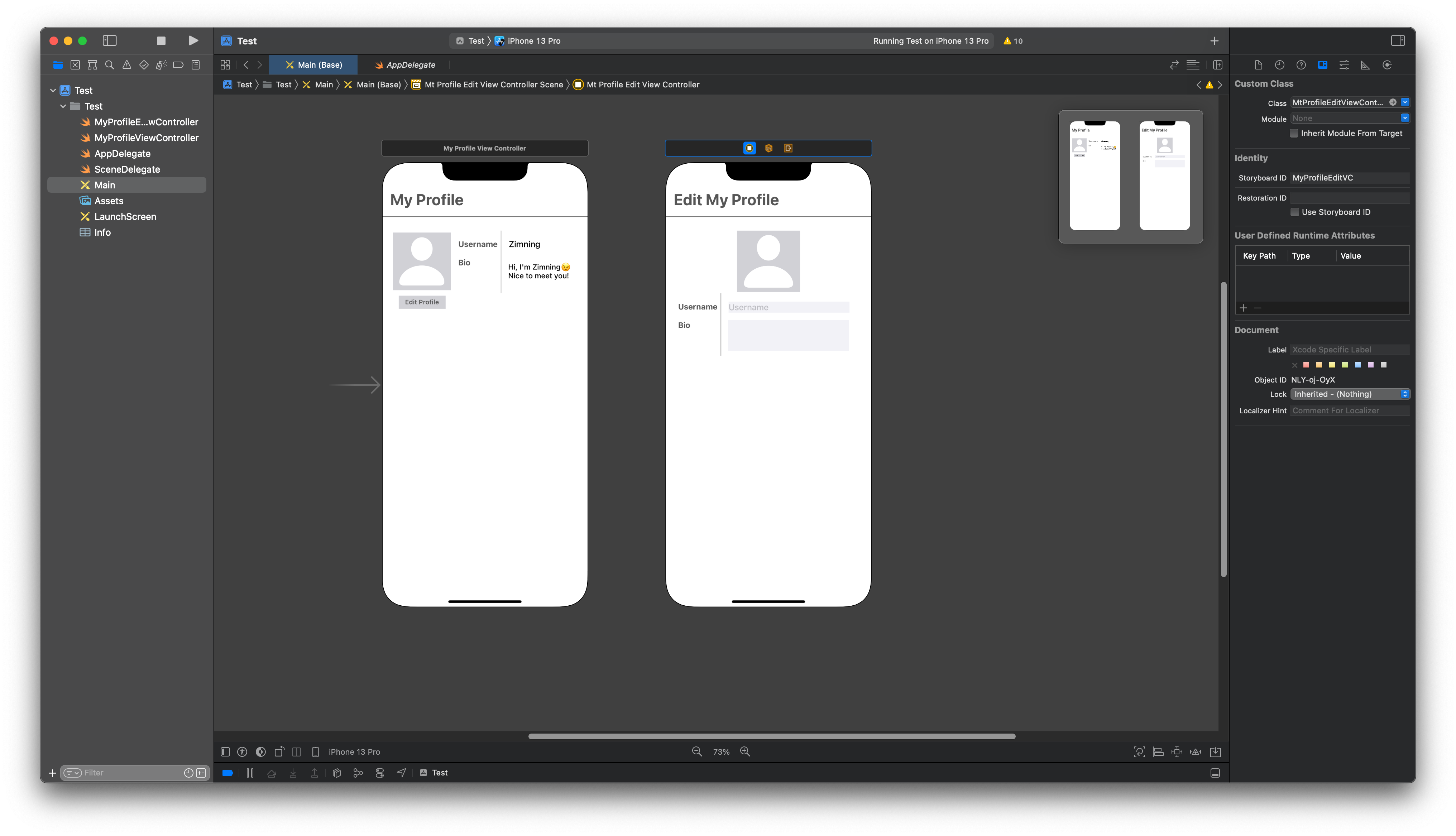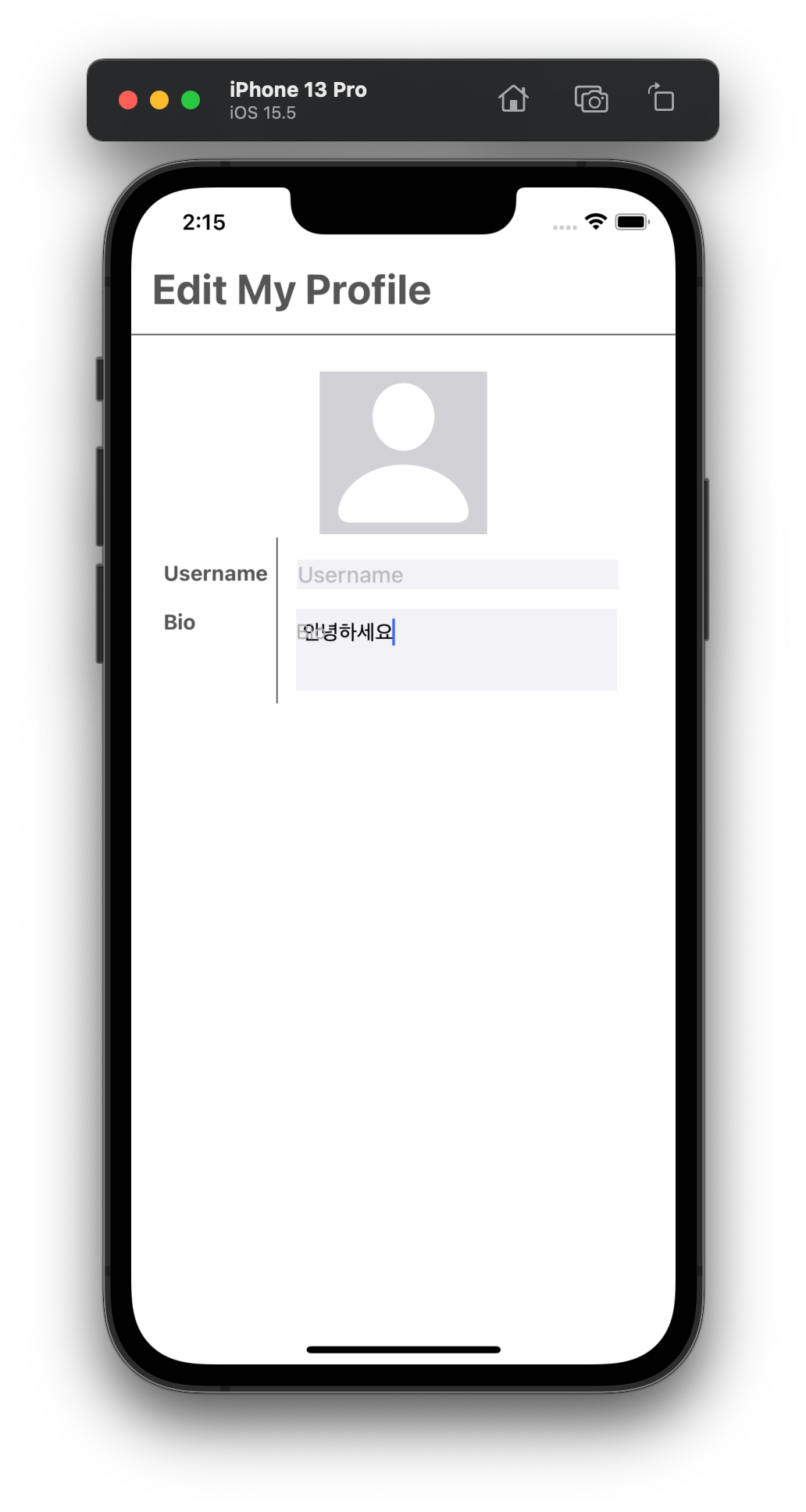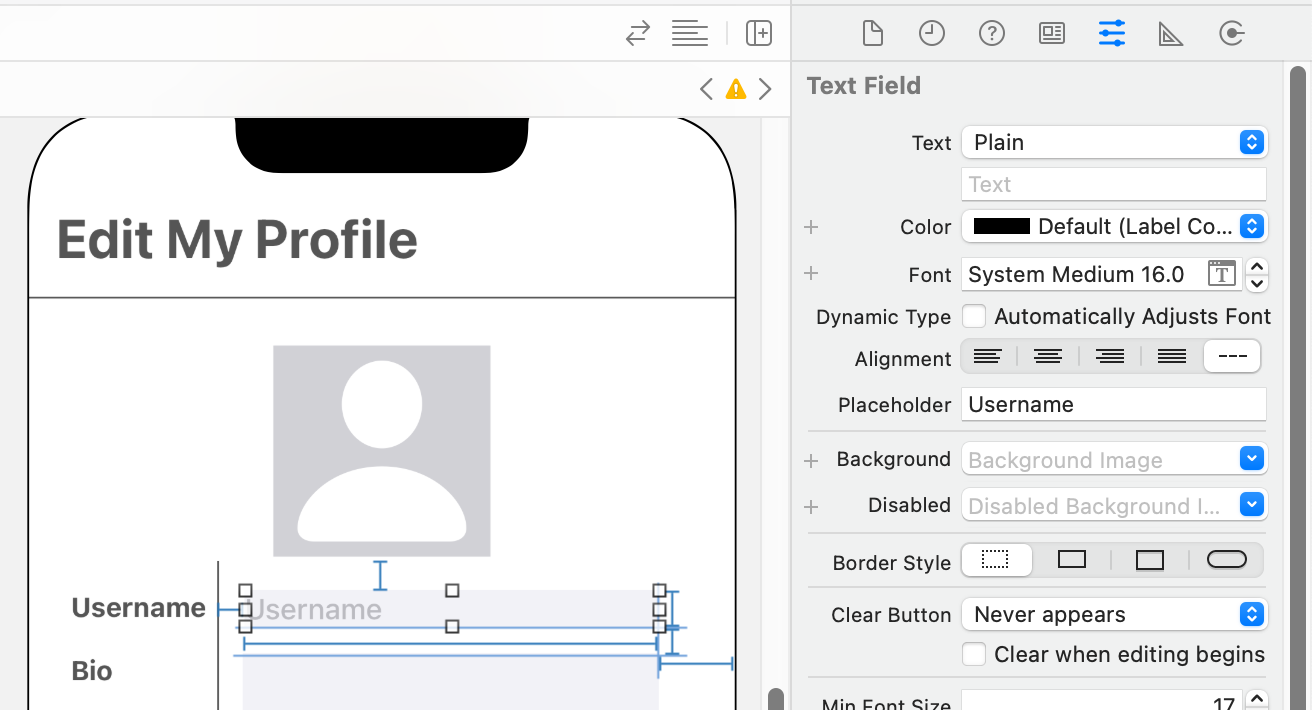 Username 입력창은 한 줄만 입력받아도 충분하기 때문에 TextField이고, Bio 입력창은 여러 줄 입력 가능하도록 TextView로 구현했다.